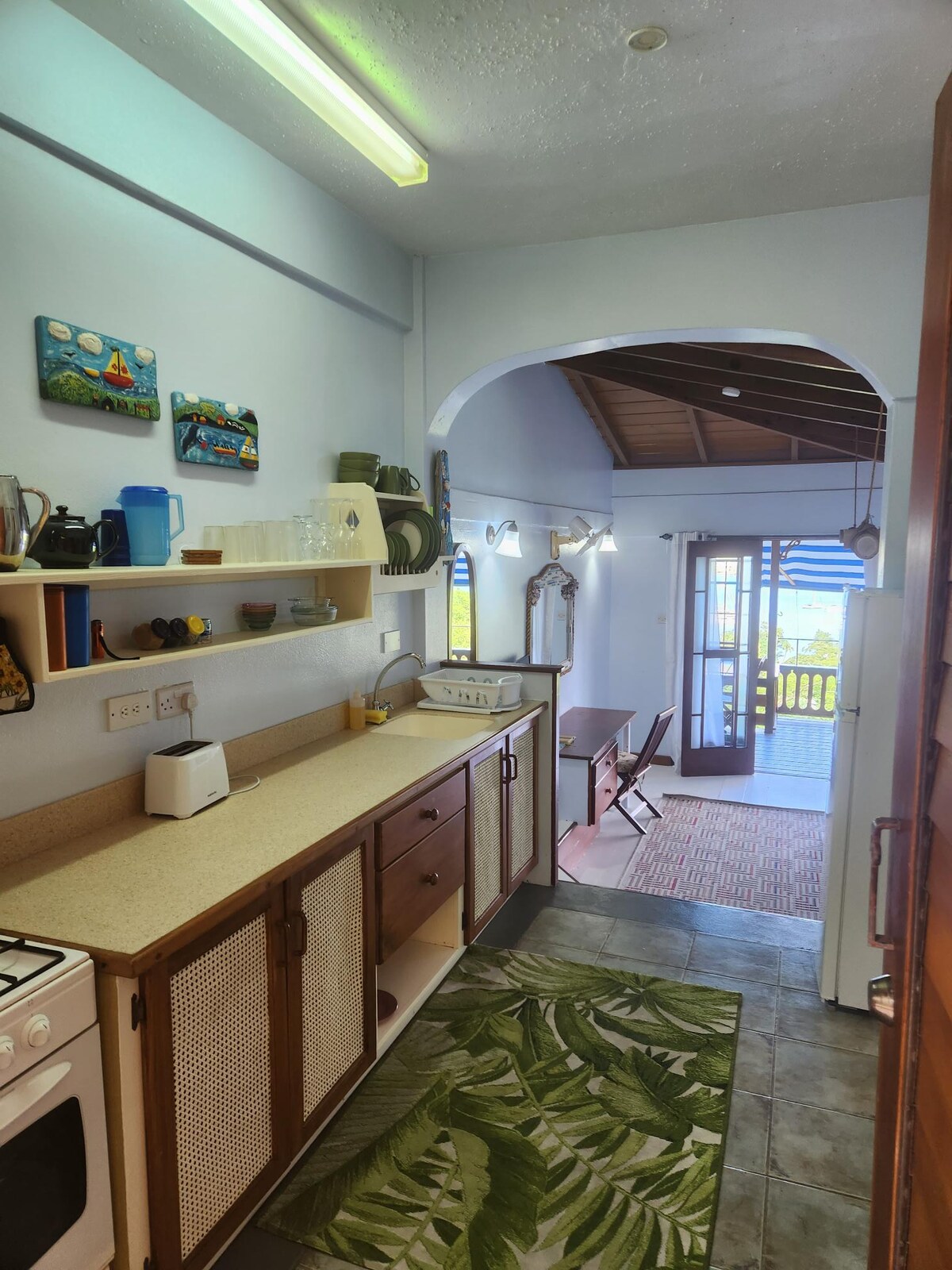To barvito stanovanje temelji na razgledu »milijon dolarjev«. S 100 koraki skozi zrele vrtove do varnega plavanja v Modri laguni. Klimatizirana garsonjera na sončni vrtni lokaciji, ki jo sestavljajo kuhinjska niša, kopalnica, spalnica in zasebna terasa. Na voljo je panoramski razgled na Modro laguno in pogled na Karibsko morje in Atlantski ocean do Grenadinov. Upoštevajte, da rezervacije malčkov ali otrok niso dovoljene zaradi lokacije ob pečini.