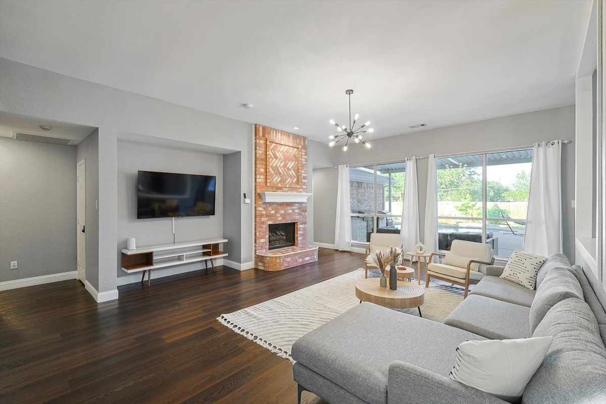 Pozlačen oddih – gostitelj: All Season Escapes Dobrodošli v prenočišču Dallas Modern Retreat, kjer se elegantno oblikovanje združuje z udobjem. ✨ Posebnosti: 🏡 Elegantni bivalni prostori in mirne spalnice 🎮 Igralnica z igrami na dvorišču v naravni velikosti 🔥 Ognjišče s sedežno garnituro Adirondack 💦 Sezonski bazen in masažna kad 👢 Živahna stenska poslikava v teksaškem slogu 📽 Prostor za ogled filmov na prostem pod zvezdami 🍽 Popolnoma opremljena kuhinja za druženje 🌆 Le nekaj minut od središča Dallasa Vaš popoln oddih v Dallasu – rezervirajte svoje bivanje še danes!