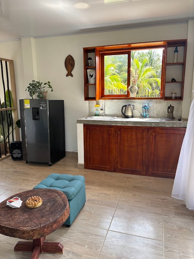 Wake up to the stunning Colombian Caribbean in a peaceful wooden cabin surrounded by nature. Relax at our Yoga Bar, perfect for meditation or enjoying a sunset drink. Prepare your favorite meals in our outdoor kitchen, complete with refreshing sea breezes. Experience our two bathrooms—one indoors and another under the open sky for a unique touch. This retreat is ideal for couples and families looking to reconnect with nature and local people, and embrace the authentic Caribbean.