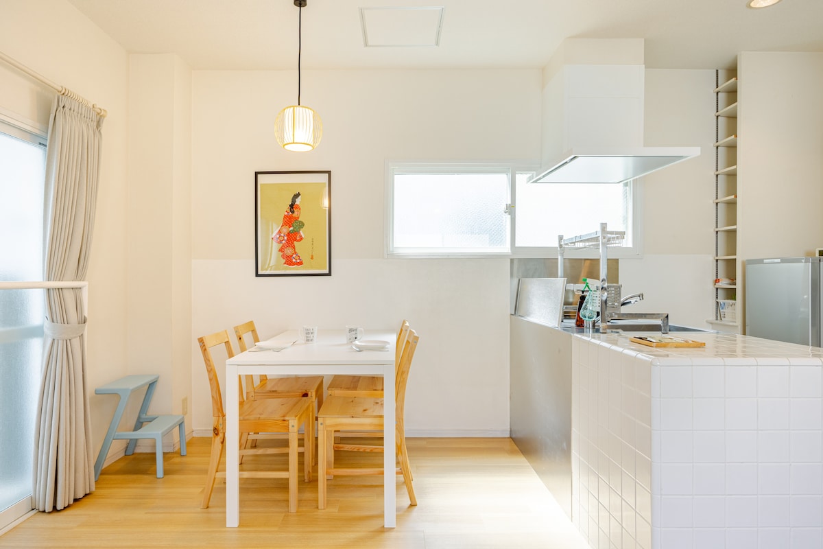This stunning 50 sq.m 3 bedrooms vacation home is a bright, spacious, convenient, and well equipped to make your stay comfortable & homely. Tenjin subway station, Tenjin bus station, and Nishitetsu Fukuoka station are 10-11 minutes walk away, making this room a perfect base to explore Kyushu. Suitable for families with young&older kids, & groups. Surrounded by local restaurants, cafes, convenient stores, and shops with great access to public transportation. A parking lot is right next.