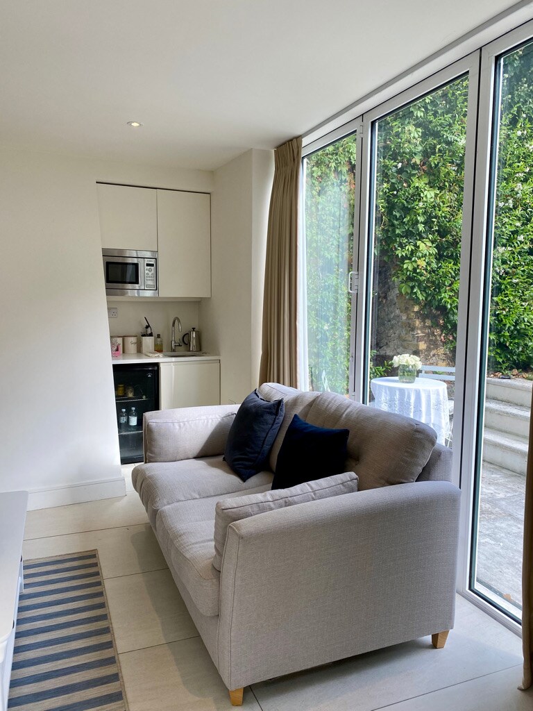 Čudovit samostojni vrtni studio, ki se nahaja v osrčju zgodovinske vasi Highgate Village. Studio s površino 320 kvadratnih metrov je opremljen z veliko zakonsko posteljo, kuhinjsko nišo, kopalnico s prostorno prho, 55-palčnim HDTV-jem, predvajalnikom BBC iPlayer, Amazonom in Netflixom. Na voljo je polzasebna zunanja terasa s sedežno garnituro. V vasi je deset pivnic/restavracij, ki so oddaljene le nekaj minut hoje, skupaj s čudovitim prostranim Hampstead Heathom in pokopališčem Highgate. Z odličnimi avtobusnimi in podzemnimi prometnimi povezavami v bližini.