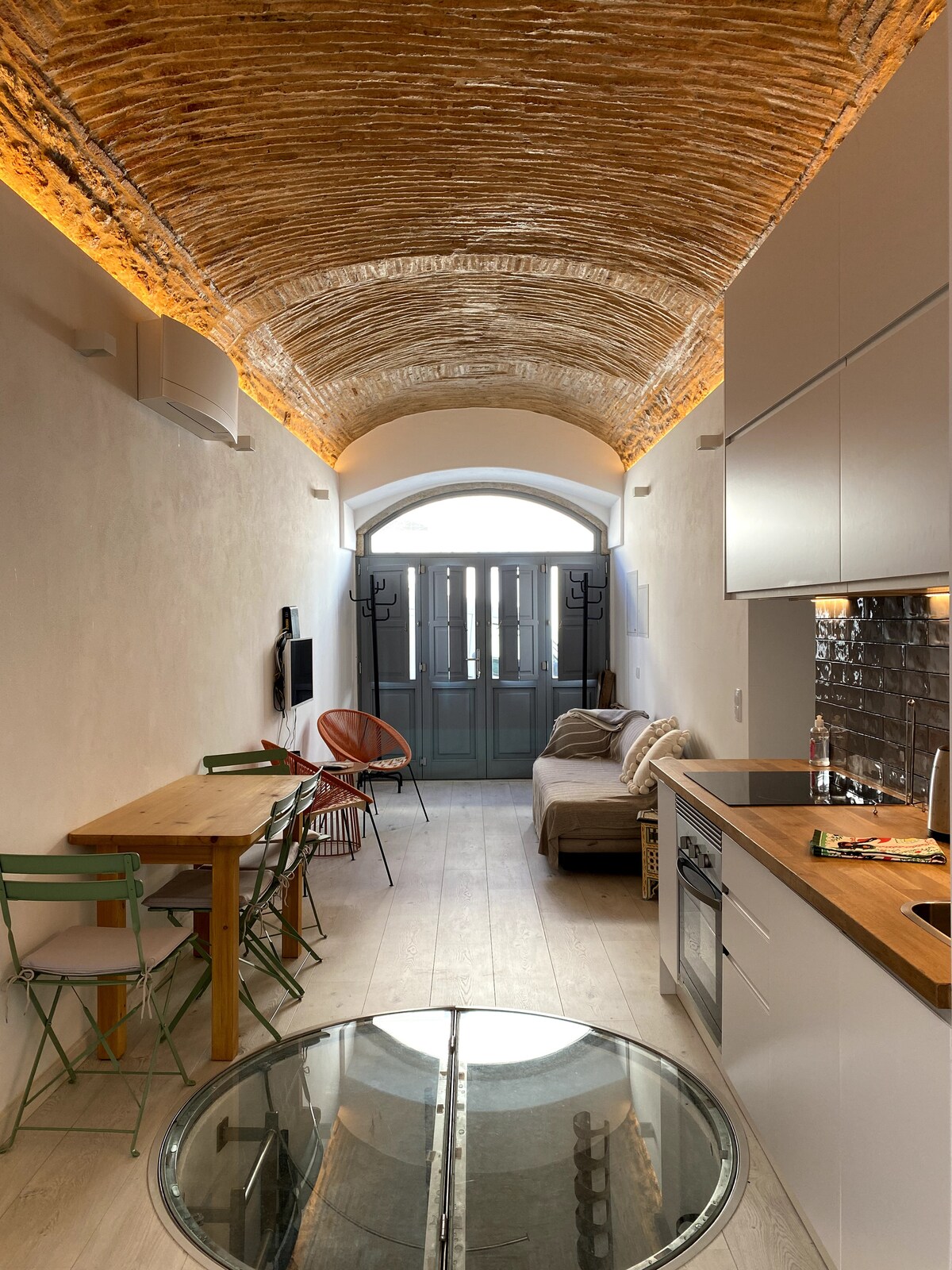 Tucked away on a quiet cobbled street in Tavira’s historic heart, The Water House is a bright, thoughtfully curated apartment with vaulted ceilings, a chef-friendly modern kitchen, and a queen bed with premium linens. A private terrace for two overlooks terracotta rooftops, soft blue plastered walls, and the quintessential hand-painted tiles of the Algarve. A perfect spot to enjoy the setting sun with a bottle of local wine.