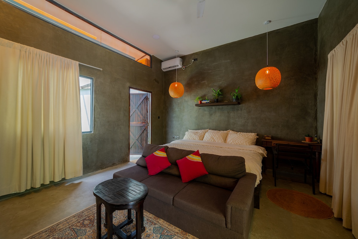 Welcome to our spacious Standard Double Room, perfect for couples or solo travelers seeking comfort and island charm. Located just minutes from the beach, this bright and airy room features a comfortable king-size or twin bed, private bathroom, air conditioning, free Wi-Fi and kettle. The room is part of our warm and friendly guesthouse, where you can unwind in a peaceful setting, close to the island’s best surf spots, local cafes, and the famous bikini beach.