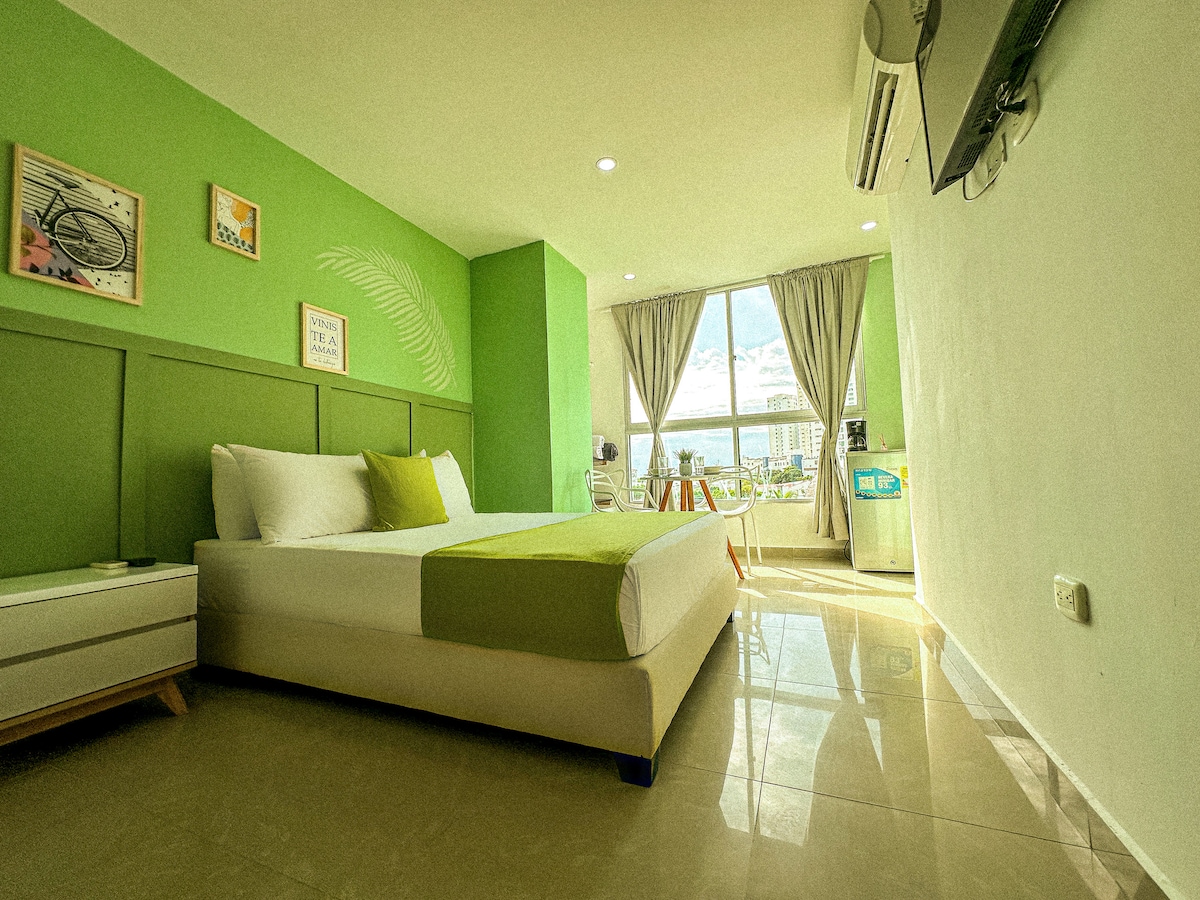 Popoln oddih le 300 metrov od plaže! Uživajte v tem sodobnem garsonjeri, ki je od El Rodadera oddaljen le 5 minut vožnje z avtomobilom. Vključuje: 🛏️ Spalnica z veliko zakonsko posteljo, pametno televizijo, klimatsko napravo in zatemnitvenimi zavesami 🛋️ Dnevni prostor z drsnimi vrati za dodatno zasebnost 🍽️ Popolnoma opremljena kuhinja za vaše udobje 🧺 Na voljo je storitev pranja perila v sklopu namestitve 🛒 Minimarket v stavbi z osnovnimi živili Rezervirajte zdaj in uživajte v odlični izkušnji!