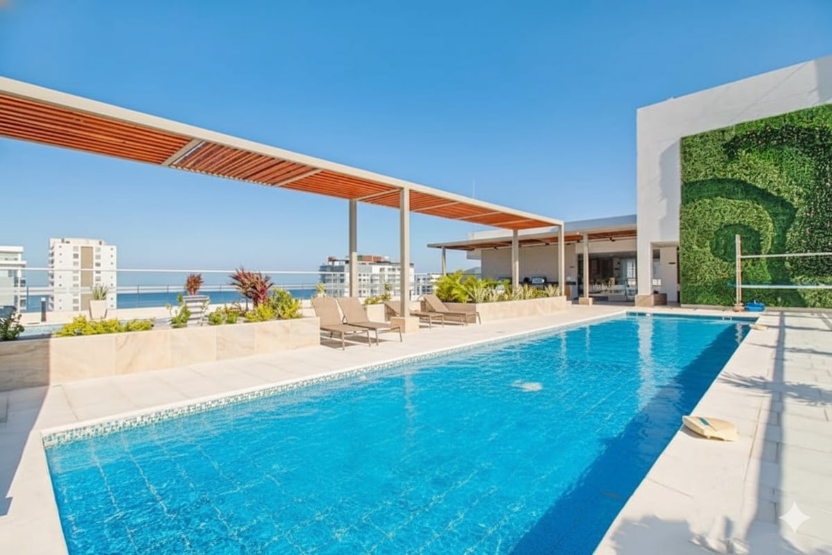 🏖️ Dobrodošli v raju v El Rodaderu v Santa Marti! Uživajte v našem sodobnem stanovanju s spektakularnim razgledom na ocean v najbolj ekskluzivnem predelu El Rodadera. 🌟 POSEBNOSTI: - klimatska naprava, - Visokohitrostni Wi-Fi - Bazen na strehi s pogledom na ocean - 3 minute od plaže 📍 POPOLNA LOKACIJA - 15 minut stran od letališča. - V bližini restavracij, supermarketov - Enostaven dostop do parkov Parque Tayrona, Taganga in Minca Idealno za pare, družine in digitalne nomade.