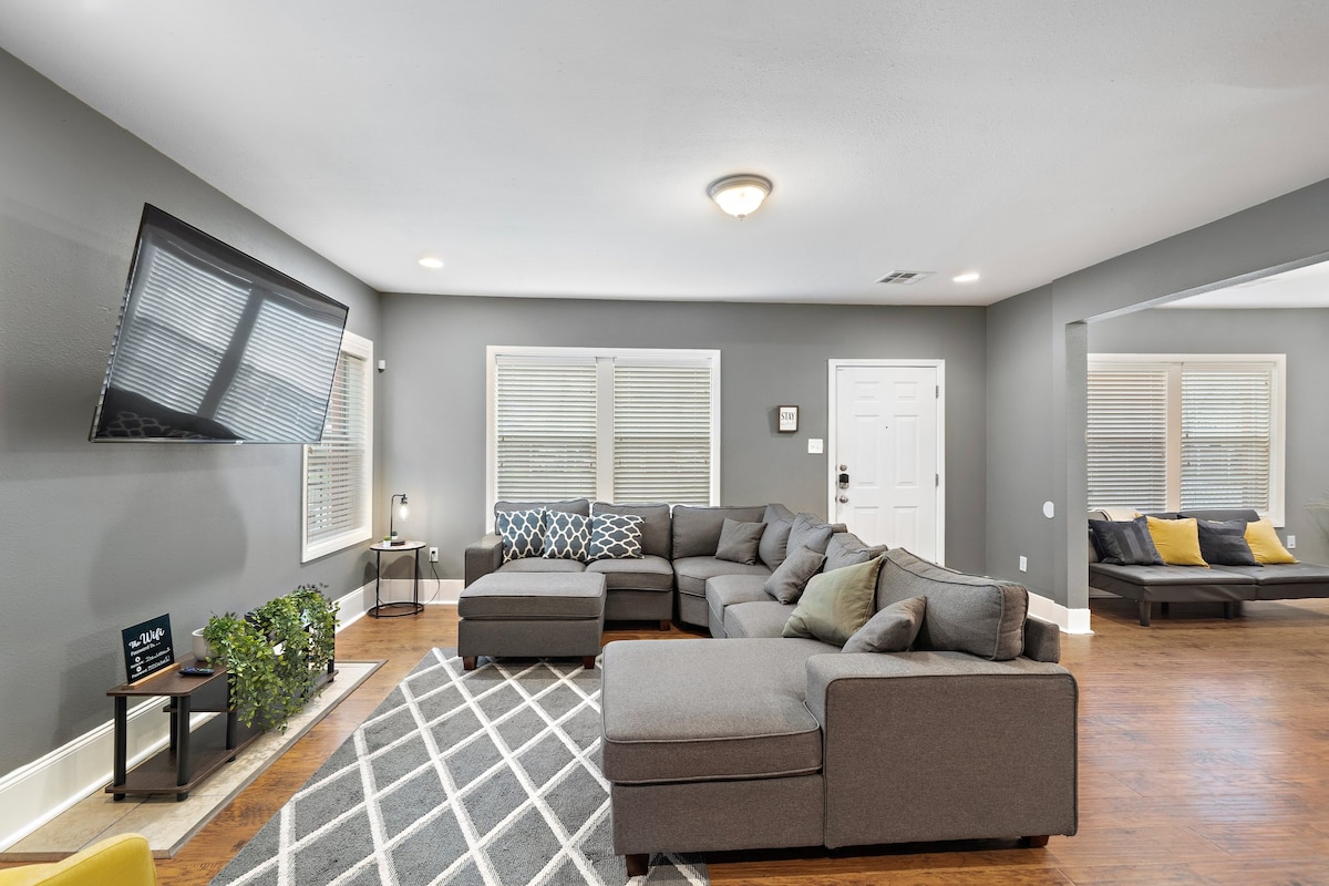 Dobrodošli v elegantnem studijskem prenočišču. Uživajte v sodobni zasnovi in vrhunski opremi, vključno s popolnoma opremljeno kuhinjo s kavnim aparatom Keurig, kuhinjsko posodo in vrhunskimi napravami. Ostanite povezani z visokohitrostnim omrežjem Wi-Fi in izkoristite pametni hladilnik. Sprostite se ob televizorjih Roku v dnevni sobi in spalnici, ki so kot nalašč za udobno uživanje v vaših najljubših oddajah ali filmih. Ta garsonjera, ki je kot nalašč za delo ali prosti čas, ponuja idealno mešanico udobja, sloga in priročnosti. Rezervirajte svoje bivanje še danes!