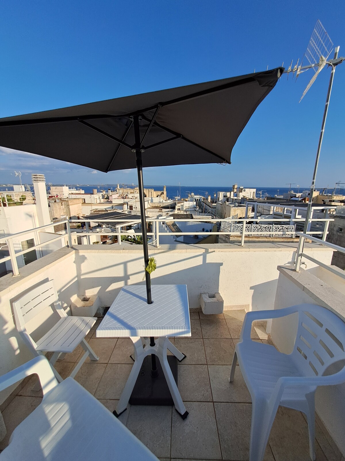 Starinska stavba v bližini mestnega središča »starega mestnega jedra« Gallipolija. Nahaja se 50 metrov stran od katedrale svete Agate in 150 metrov od čudovite plaže »Purità«. Terasa je opremljena s stoli, klopjo, mizo in senčnikom, kjer se lahko sprostite ob kozarcu vina ob sončnem zahodu ali blagem vetriču hladne poletne noči. Druga terasa se uporablja kot prostor za solarij s senčniki in ležalniki. Veselimo se, da boste lahko živeli mediteranski življenjski slog.