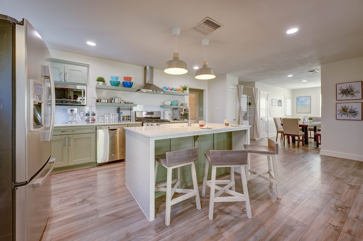 Čudovito prenovljeno prenočišče z udobnim in sodobnim dizajnom. Sanjska počitniška hiša, ki sprejme do 11 oseb, ima zasebni bazen, masažno kad in prostorno teraso pod tropsko palapo. Samo eno ulico stran od morskega zidu/plaže! V neposredni bližini Krogerja je nakupovanje z živili le vetrič. Le nekaj minut stran od glavnih znamenitosti in nakupovalnih centrov. Hišo poganjajo sončni kolektorji in Tesla Powerwall. Čistoča, priročnost in odlična komunikacija so naše prednostne naloge.