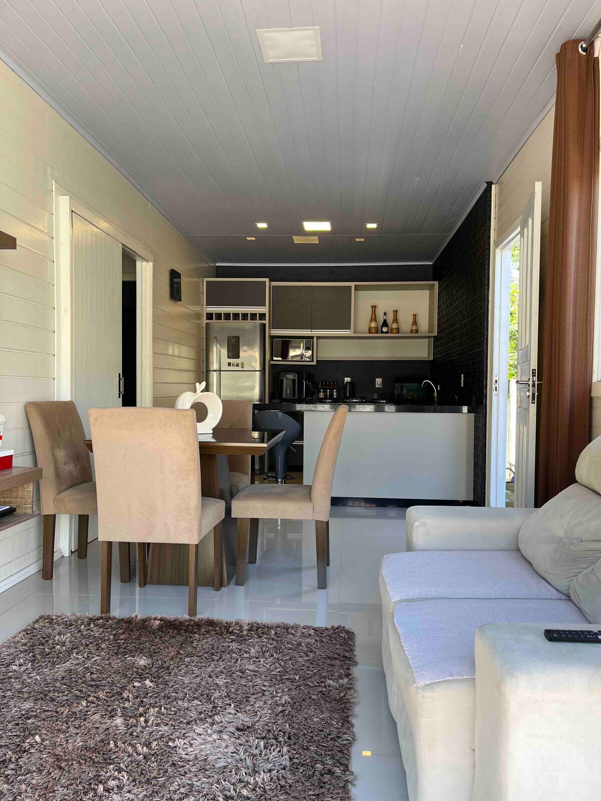 Čudovito stanovanje, opremljeno, v najboljšem stanovanju z bazenom južno od države - Marine Home Resort 1 spalnica z apartmajem z 1 zakonsko posteljo in 1 enojno posteljo, 1 kopalnica, kuhinja, dnevna soba dve sobi, servisni prostor, balkon z žarom. V dnevni sobi je 1 zelo udoben kavč in napihljiva vzmetnica KLIMATIZIRANE SOBE. Wi-Fi, PAMETNA televizija z NETFLIXOM na 2 TELEVIZORJIH (IPTV) Pokrita garaža za 1 avtomobil Stanovanje 100 m od plaže Cachoeira. Ima supermarket v pritličju