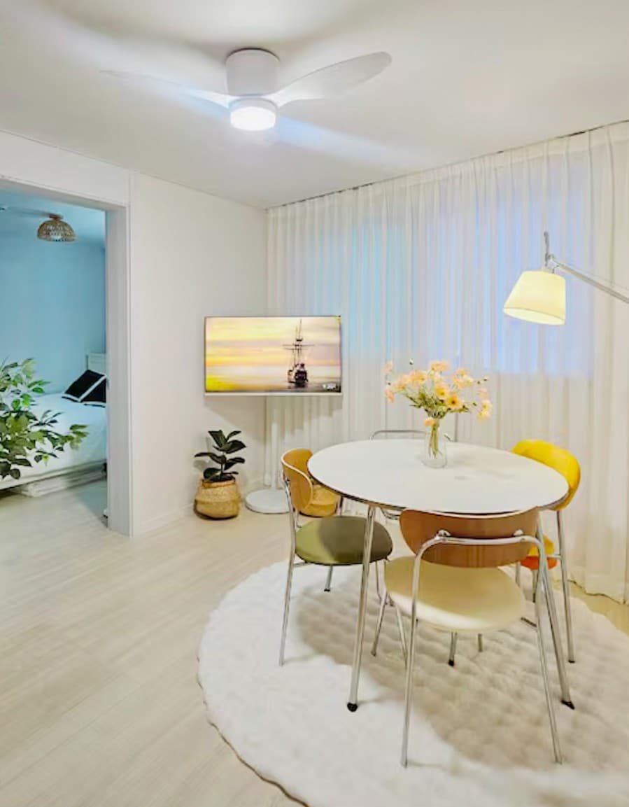 Pojdite na moj profil in si oglejte mojo drugo hišo🤍💜 V isti stavbi so vse 4 sobe v dobrem stanju in jih upravljajo same. 🙏🏻 Okrasne ploščice sem ročno izdelal, da se ujemajo z belim tonom. Pozdravljeni,🙂 sem gostiteljica in Poskrbimo za »varnost«, da lahko gostje bivajo samozavestno, mi pa opravimo »vsakodnevno čiščenje, pranje perila in razkuževanje«, da zagotovimo udobno in prijetno okolje. Parkiranje je na voljo 🚘😈Netflix, Disney +, Youtube, Tiving, Watcha, Wavve itd. Na voljo so vsi ogledi Ott 📺 illy aparat za kavo s kapsulo dobrodošlice ☕️ brezplačna cona za čustvene 💻fotografije Wi-Fi 📸