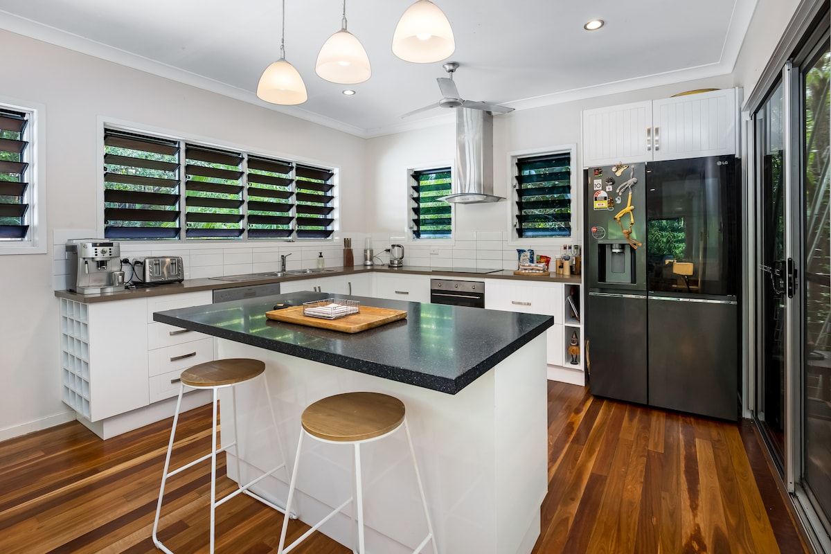 Pobegnite v svoj zasebni košček tropskega Townsvilla. Prostorna hiša v slogu Queenslander s 3 spalnicami v West Endu združuje sproščeno bivanje v zaprtih prostorih z zasebnim bazenom in pokrito zunanjo površino za zabave – kot nalašč za družine, pare in daljša bivanja. Preživite dneve v osvežilnem bazenu, uživajte v večerih z žarom na pokriti terasi ali pa se sprostite v klimatiziranem udobju. Z dvema kopalnicama (vključno s priročno kopalnico ob bazenu), popolnoma opremljeno kuhinjo, varno pokrito