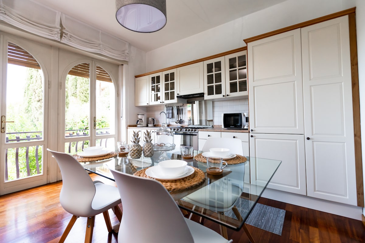 Uživajte v našem prenočišču, oblikovalskem stanovanju, kjer se legendarni kosi pohištva zlijejo s starinskimi detajli. Pred kratkim prenovljen in ponuja tri velike spalnice in tri nove neodvisne kopalnice. V drugem nadstropju je velik balkon s pogledom na vas Garda in Rocca. V drugem nadstropju veliko okno ustvarja edinstveno okolje med odprto dnevno sobo, teraso, nebom in jezerom. Naše stanovanje je od jezera oddaljeno 5 minut hoje in ponuja ekskluzivno stalno parkirno mesto.