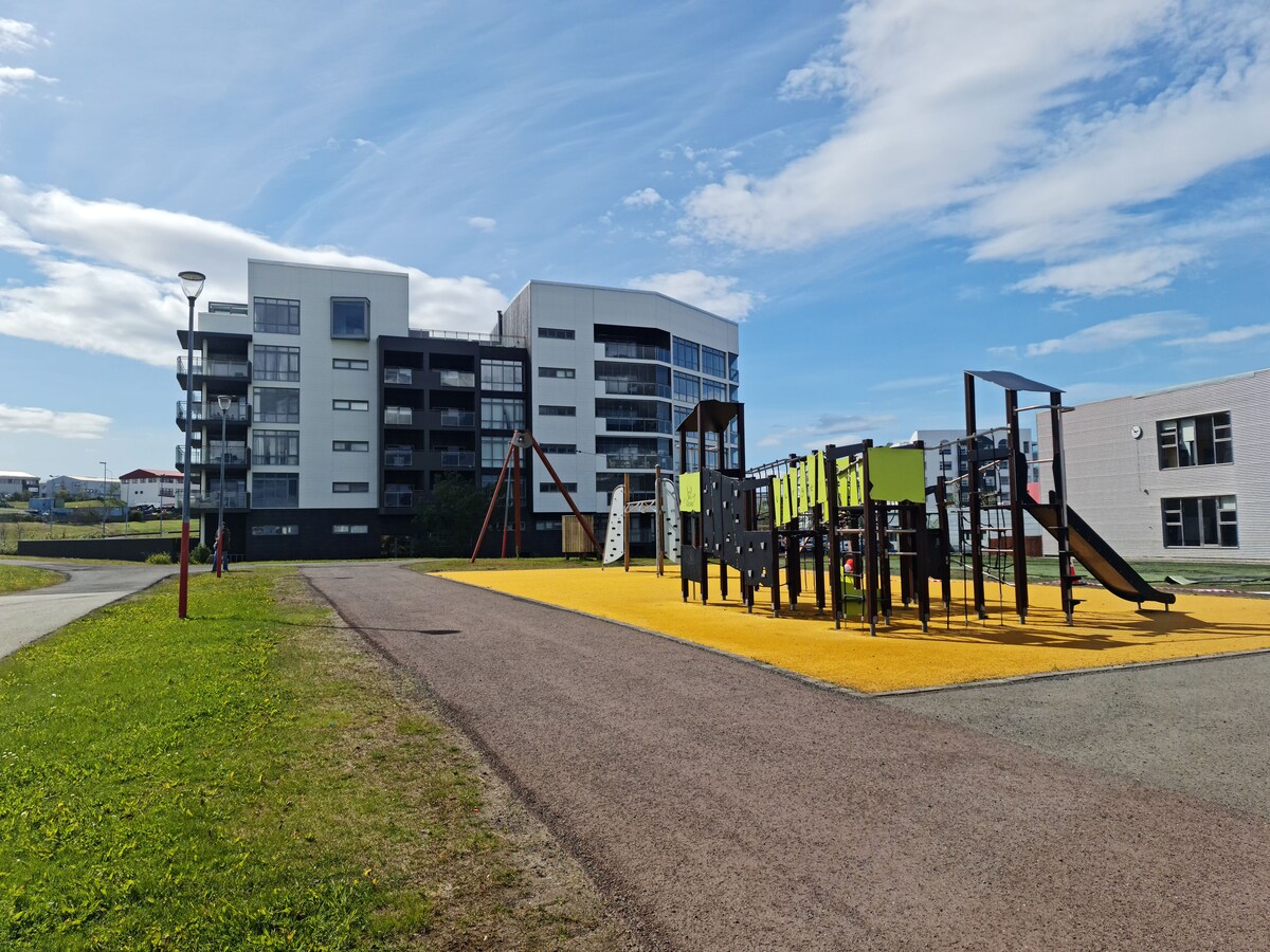 Čudovita garsonjera v mirni soseski,. Do trgovine z živili, ki je na voljo non stop, vas loči le 3 minute hoje, picerija, restavracija s hamburgerji, restavracija s sladoledom in lekarna. Center Reykjavika je le 10-15 minut vožnje (9 km) Avtobusna postaja 2 minuti hoje - traja približno 20 minut - Novo svetlo in udobno stanovanje - Postelja 160x200 - Kuhinja je popolnoma opremljena - Kopalnica, vrata 81 cm, prha, brisače in toaletne potrebščine - Zunanji bazen/ infrardeča savna/fitnes studio - 10 min hoje - Morska promenada 3 min hoje
