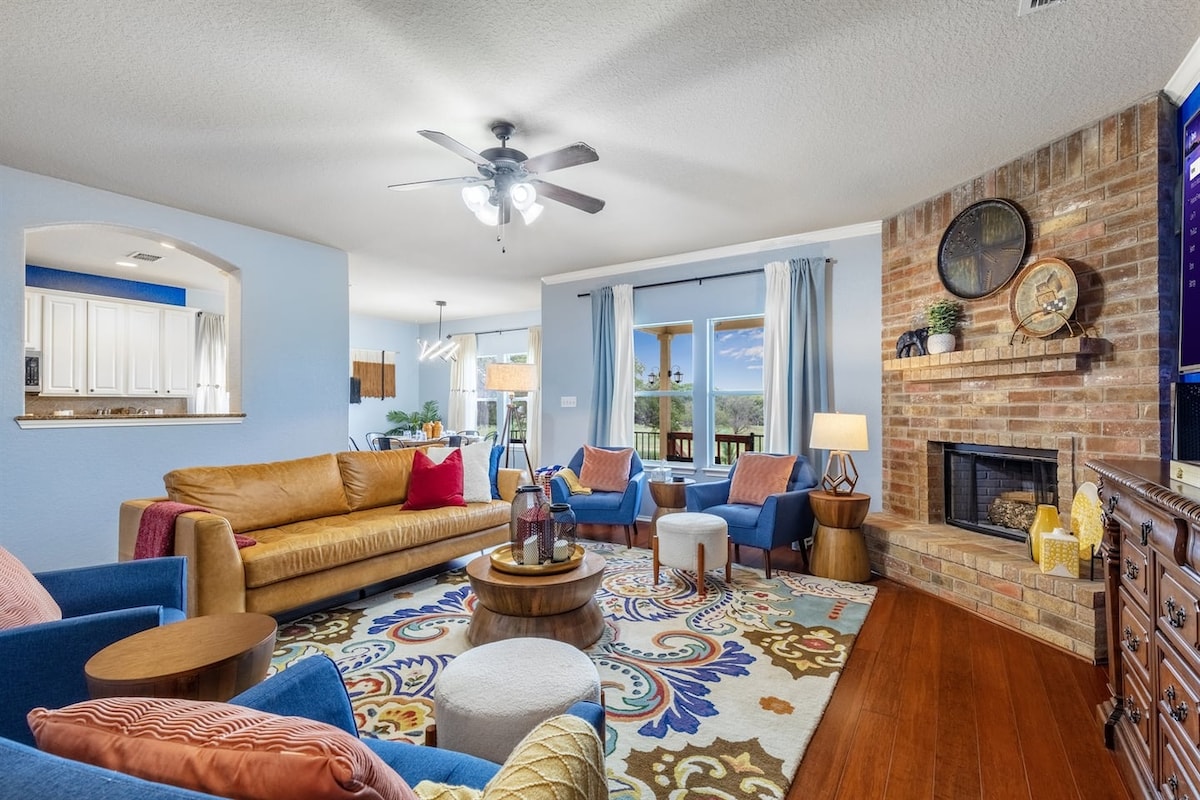 4 spalnice - družinam prijazno 10 gostov Paket in👶 igra, otroški stol za hranjenje Uživajte v zabavi 🎼Bluetooth v stropnem prostorskem zvoku 🎱Biljardna miza 🎲Namizne igre 🔥Ognjišče Komplet za👉 predvajanje 👉Zunanji žar 👉Popolnoma opremljena kuhinja 👕Pralni in sušilni stroj 🚗10 min👉Randolph 🚗30 min👉Six Flags🎡 🚗45 min👉Seaworld 🚗30 min👉v središču San Antonia 🚗25 min👉New Braunfels/Schlitterbahn/Tubing 🚗30-minutni👉🛫 SAKSOFON 5⭐»Vse je bilo v redu!« Dodajte moj vnos na seznam želja tako, da kliknete ❤ v zgornjem desnem kotu.