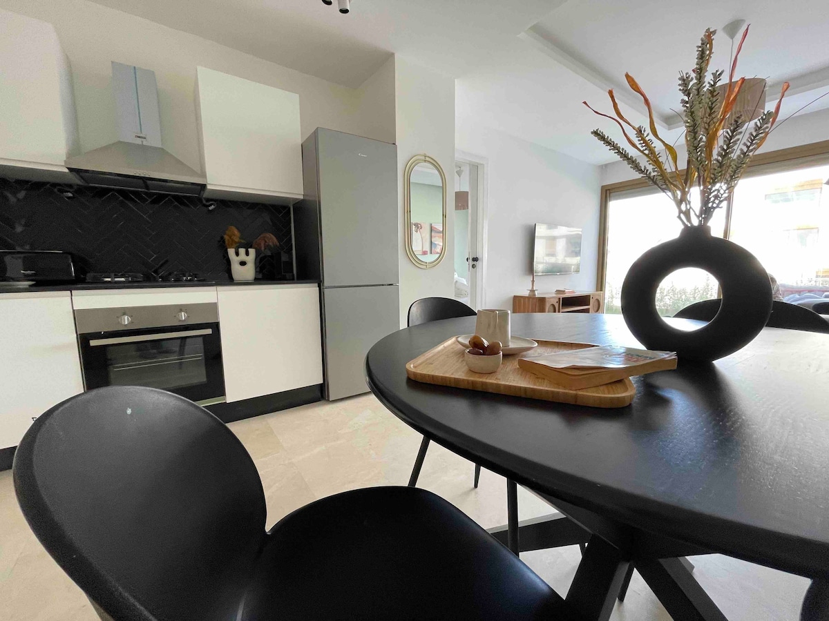 ✨ Uživajte v izjemnem okolju v vrhunski rezidenci, ki je zasnovana za sprostitev, udobje in eleganco. Vključen dostop: 🏊♀️ Panoramski bazen s spektakularnim pogledom na morje 💪 Popolnoma opremljena telovadnica ⚽ Nogometno igrišče in otroško igrišče Idealna lokacija nasproti nakupovalnega središča Carrousel – restavracije, kavarne, butiki, kino in trgovina Carrefour so vsi v hoje. ✨ Vse, kar potrebujete za popolno bivanje v Rabatu ✨ Opomba: neporočeni pari niso sprejeti, razen če sta oba gosta tuja državljana.