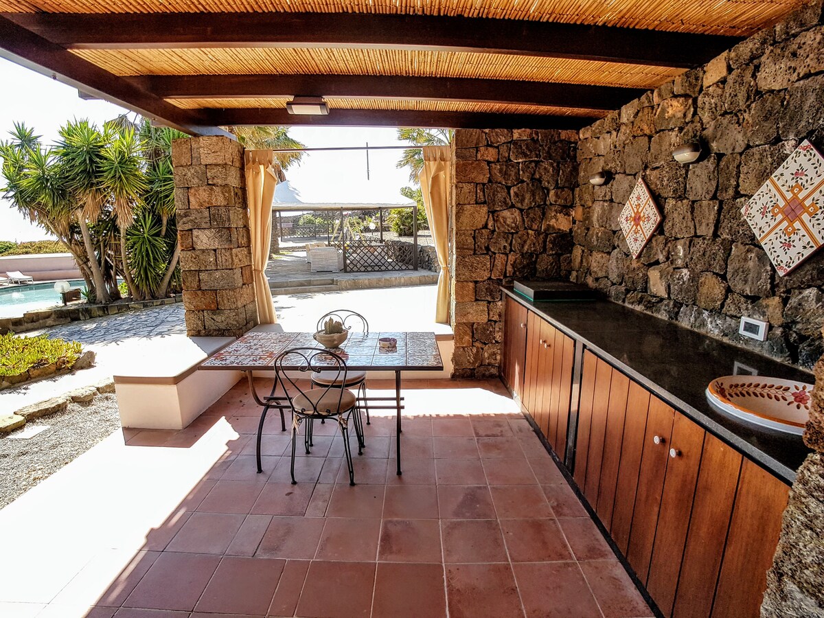 Namestitev je sestavljena iz 2 dammusijev, opremljenih z vsem potrebnim udobjem, da bo vaše bivanje čim bolj sproščujoče in brezskrbno. Nepremičnina je obdana s 8000-metrskim trgom zemljišča, ki se obdeluje z oljčnim nasadom in slavnim zibibbom Pantelleria. Velika terasa ima popolnoma opremljeno kuhinjo, pralni in pomivalni stroj, veliko mizo, pečico na drva, kamniti žar in udoben kavč. Na voljo sta 2 zunanji prhi z vročo vodo in bazen (od 1. junija do 30. septembra)