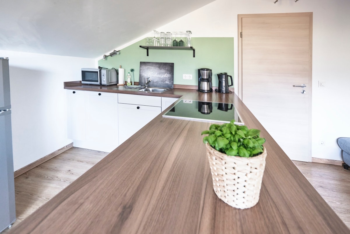 Fully equipped apartment in an idyllic location between the Alps and Munich – perfect for your mountain, lake or city getaway, with or without remote work. This modern, cozy, loft-style 4-room apartment offers 100 sqm of space, incl. 3 bedrooms, a kitchen with starter supplies, 2 bathrooms, a spacious garden with terrace, treehouse, trampoline. Enjoy a fireplace, high-speed internet, a desk for remote work.A nice Jaccuzzi and fitness room are available for the guests.