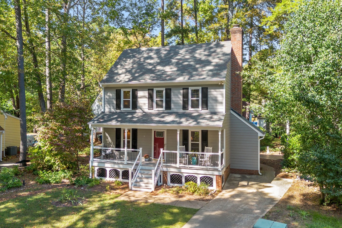 Bivajte v našem rustikalnem tematskem domu 13 minut od centra mesta Raleigh in 4 minute od naše najljubše kavarne Full Bloom Coffee v zgodovinskem središču Garnerja. Uživajte v našem prenočišču s tremi spalnicami z dvema kraljicama iz spominske pene in eno zakonsko posteljo iz spominske pene. Vaš drugi dom ima popolnoma posodobljeno kuhinjo in odličen dnevni prostor v enem za vse vrste zabave. Ne pozabite kupiti bobnov in bučk za zunanji žar! V vednost, imamo mucka v ločenem spodnjem stanovanju.
