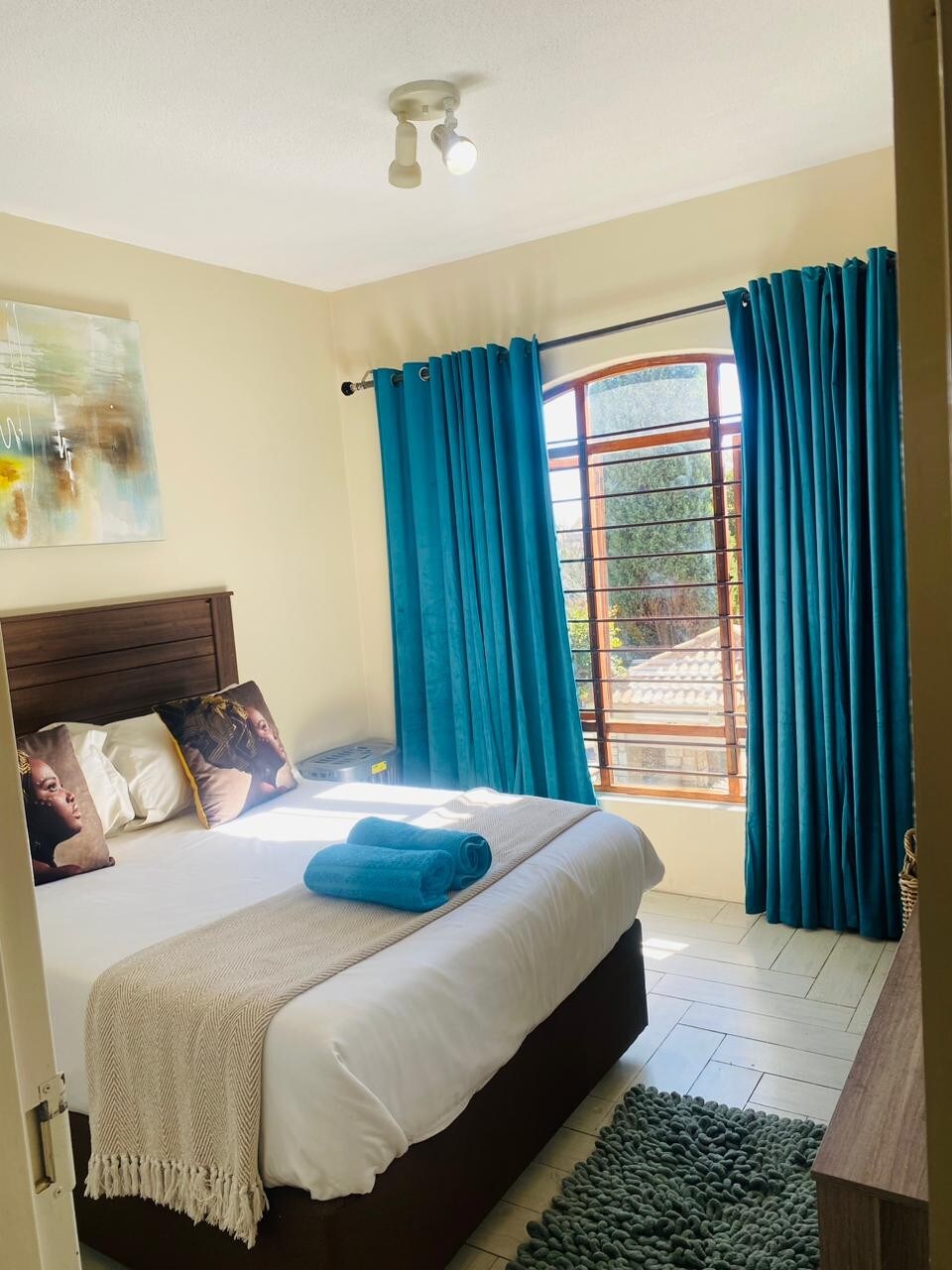 Chic One-Bedroom Space Stylish one-bedroom apartment in the heart of Midrand ! Features plush double bed, en-suite bathroom, open-plan living area with kitchen, and chic decor. Enjoy high-speed Wi-Fi, flat-screen TV, and in-unit laundry. Secure building with keycard access and 24/7 security. Walking distance to trendy spots. Perfect for solo travelers or couples. No smoking or pets. Maximum occupancy: 2 guests. Book now and experience ultimate city comfort!