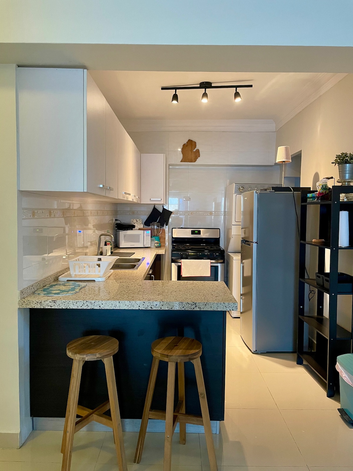 ## POMEMBNO: OPERACIJA ALI KAKRŠNAKOLI DEJAVNOST, KI POTREBUJE OSEBJE (MEDICINSKA SESTRA, ČISTILEC, ŠTEDILNIK, VOZNIK), JE STROGO PREPOVEDANA ## Uživajte v udobju tega čudovito urejenega dvosobnega stanovanja, ki se nahaja v bližini najbolj legendarnih turističnih točk Santo Dominga. Stanovanje ima ogromen 60-palčni 4k televizor za gledanje vaše najljubše vsebine in hiter internet za vse vaše potrebe po povezljivosti. Udobno se spočijte po celodnevnem ogledu mesta v veliki zakonski postelji s kakovostno posteljnino in blazinami. Kmalu se vidimo.