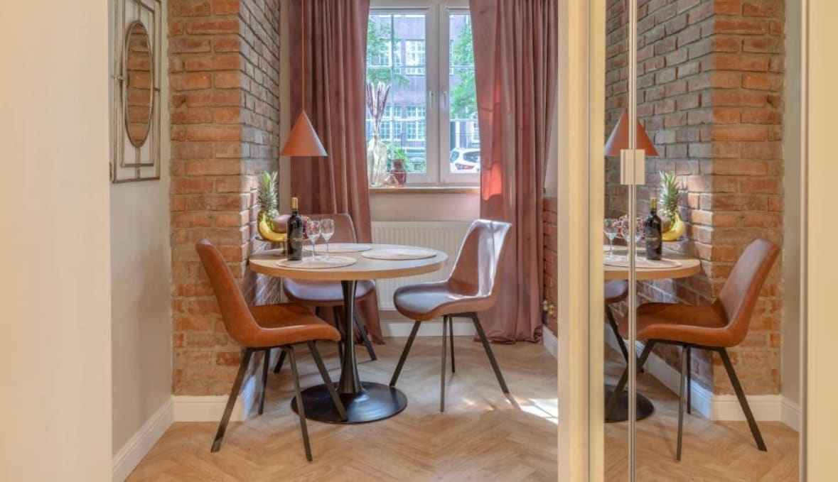 Stanovanje 45 kvadratnih metrov, dve ločeni sobi ter ločena kuhinja in kopalnica. Nahaja se v 2. nadstropju (3. nadstropje). S pogledom iz dnevne sobe na Veliko orožje. Okna spalnice s pogledom na baziliko sv. Marije gledajo na zaprto dvorišče. Vse največje znamenitosti Gdanjska so le kratek sprehod. 10 minut hoje do železniške postaje Gdańsk Główny, 5 minut do tramvaja in avtobusa.
