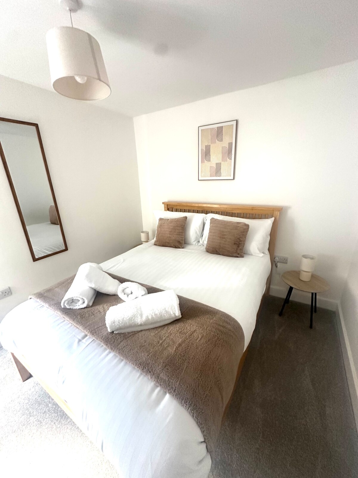 stanovanje ob reki z zakonsko posteljo s štirimi posterji in raztegljivim kavčem v isti sobi za 2 gosta, primeren za 1 odraslo osebo ali 2 otroka le nekaj korakov stran od pomola reke Great Ouse, kjer se na tem najbolj romantičnem območju ob reki družijo delovna plovila, prostočasna križarjenja in galebi. To luksuzno stanovanje, ki je kot nalašč za bivanje za zabavo in festivale v mestu, je kot nalašč za bivanje v mestu, s pogledom na St. George's Guildhall - najstarejše delovno gledališče v Veliki Britaniji s povezavami do Shakespearja