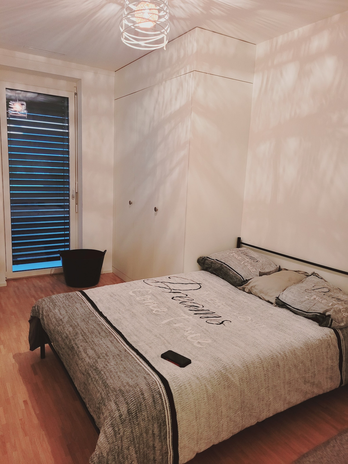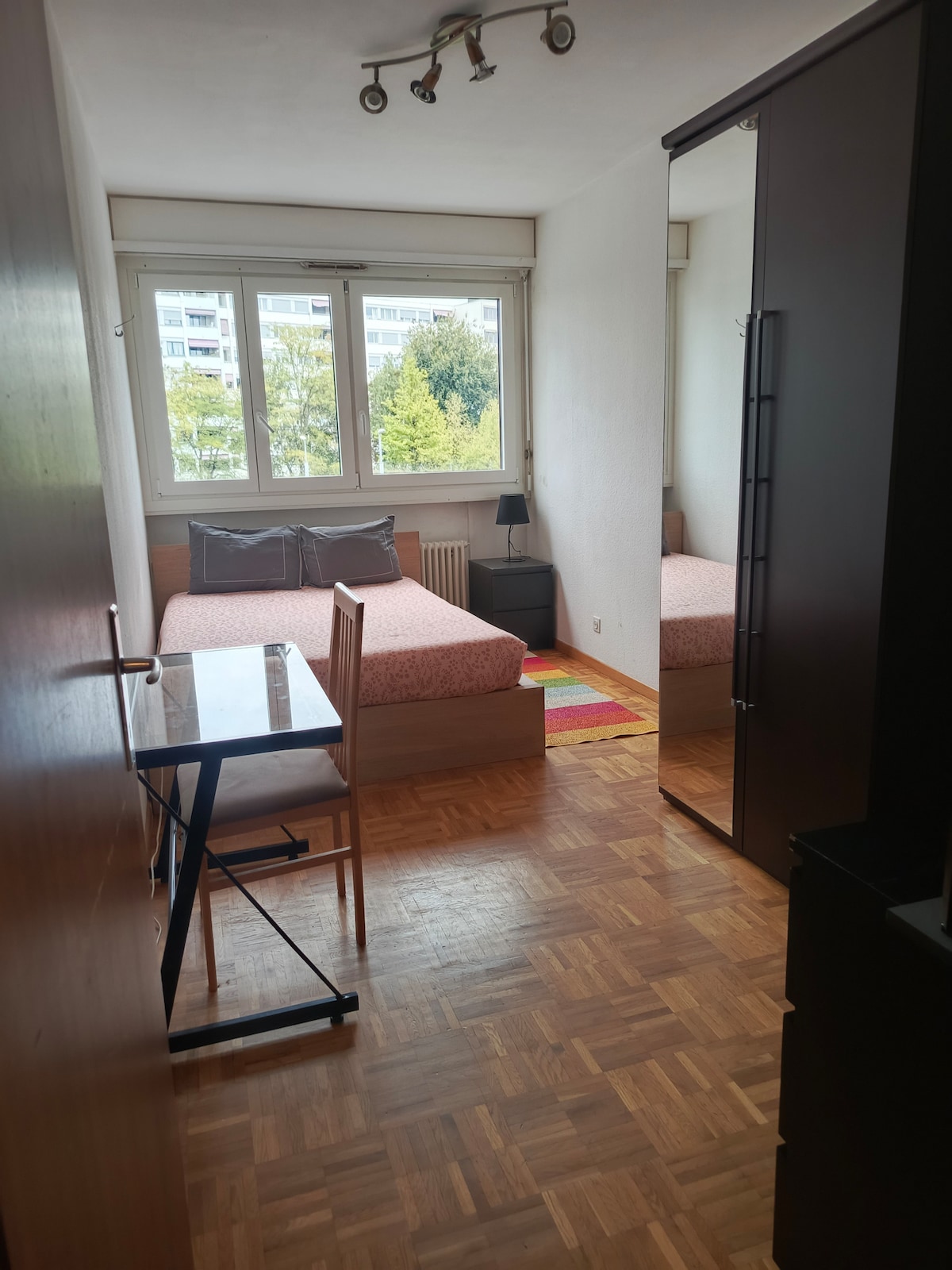 Celotno prenočišče v Ženevi z balkonom – 1 spalnica + dnevna soba – klepet v sklopu namestitve Ponujam celotno stanovanje v Ženevi, ki se nahaja na idealni lokaciji, s površino 70 m² in prijetnim balkonom. Nastanitev vključuje spalnico z zakonsko posteljo in dnevno sobo s spalnim prostorom za dve dodatni osebi (raztegljiv kavč ali enakovredno), ki je kot nalašč za spanje do 4 oseb.