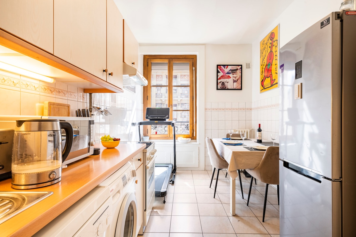 Spacious 3-room apartment in the heart of Eaux-Vives, just steps from Lake Geneva. Cozy living room, comfortable bedroom with a 180x200 bed, fully equipped kitchen, bathroom and separate WC. Bright, high ceilings and a peaceful atmosphere. Located in a vibrant area with cafés, restaurants, shops and parks. Excellent transport links, walking distance to the lake and city center. Perfect for relaxing after exploring Geneva, whether for work or leisure.