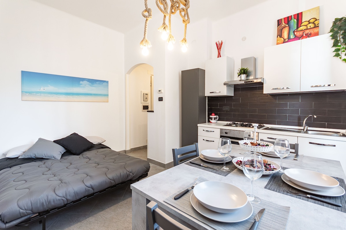 Značilno stanovanje v velikosti 50 kvadratnih metrov, 15 m od morja, v drugem nadstropju tipične genovske ribiške hiše iz zgodnjih 1800-ih. Na glavni cesti med Genovo Quinto in Genova Nervi, očarljivo vasjo Genoese Levante. Odlično izhodišče za obisk Genove in čudovitega Cinque Terreja. Čudovito pohištvo v kombinaciji s čudovitim pogledom na morje in plažami pred njim je idealen kraj za romantično bivanje na morju, ne da bi se odrekli bari, restavracij in trgovin.