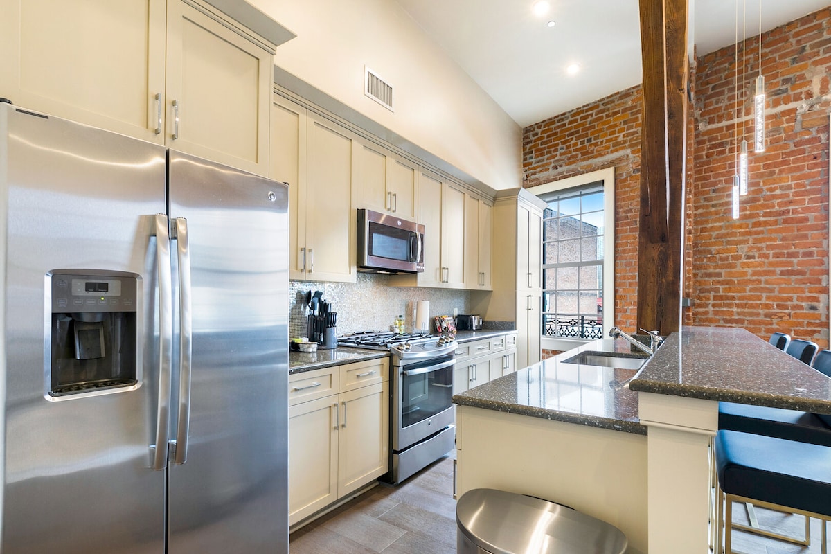⭑ Dobrodošli v The Pontchartrain⭑ Ta elegantna suita z dvema spalnicama in dvema kopalnicama se ponaša z izpostavljeno opeko, izvirnimi lesenimi tramovi in prostornim zasebnim zunanjim prostorom, ki združuje čar New Orleansa z vrhunskim udobjem. Pontchartrain je kot nalašč za pare, prijatelje ali majhne skupine. Vključuje popolnoma opremljeno kuhinjo, notranjo jedilnico za šest oseb in svetel dnevni prostor v osrčju okrožja Warehouse District. Le nekaj korakov od Francoske četrti je vaše odlično izhodišče za raziskovanje mesta.