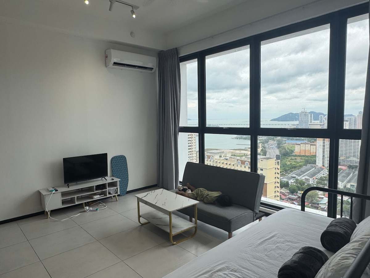 Our brand new cosy suite is perfectly located in the heart of Penang with easy access to local tourist attractions. Japanese/Korean Restaurants & 7-11 convenience store are right below our home! Local food, KFC & Pizza Hut is within 5 mins walk! We Provide • Great hospitality services • Sunrise & City View • PS3 Entertainment & Netflix • 1 Private car park • 100 Mbps WiFi • Infinity Pool View • Fully air-conditioned If you like a quiet & cosy place in this busy city, Don't Wait, Book Now!!!