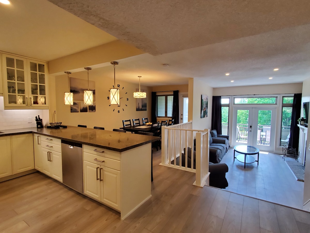 Unit located by Living Stone Golf Resort, minutes away from downtown Collingwood, and 10 mins from Blue Mountain/Scandinave Spa. Naše prenovljeno stanovanje ponuja sodobno elegantno eleganco. Uživajte v 58 kvadratnih metrih zasebnosti z dvema spalnicama in eno kopalnico s kadjo in prho. Na voljo so tudi kavč, električni kamin, Netflix in osnovna kabelska televizija, Wi-Fi ter pralno-sušilni stroj v kopalnici. Zunanja terasa s pogledom na vrt.