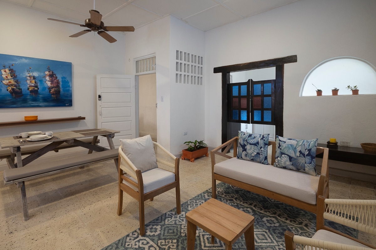 Uživajte v našem udobnem stanovanju v Getsemaniju, enem veselih in najvarnejših krajev v mestu. Vdihnite mir in udobje treh nadstropij, ki so zasnovana za vas. Zjutraj se povzpnite na tretje nadstropje in uživajte v dobri kavi sredi čudovite karibske dekoracije, zvečer pa si privoščite dobro vino v družbi družine ali prijateljev, ki gledajo v nebo nad Kartageno, medtem ko vas boža morski vetrič.