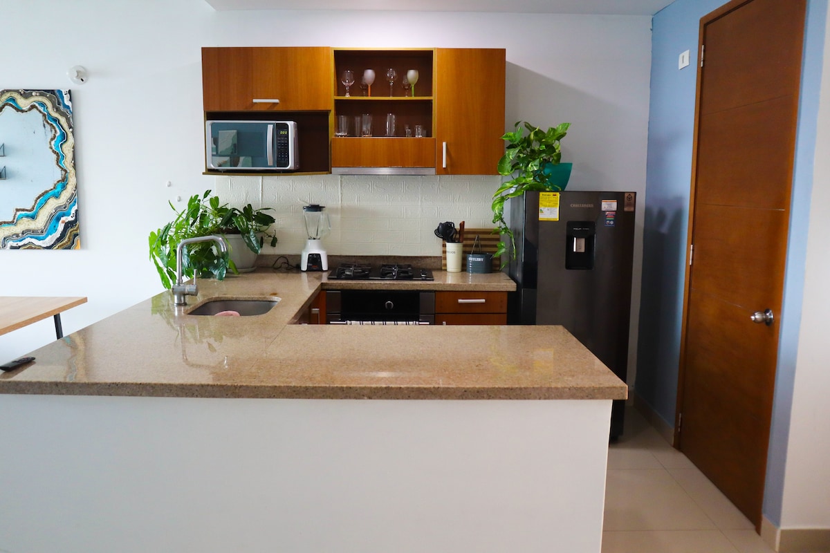 Sodoben in udoben studio apartma, ki se nahaja v sektorju Sky Sea, poleg kongresnega centra hotela Las Américas, pred Playa Azul, 5 minut od letališča Cartagena in 10 minut od obzidanega mesta. Enostaven dostop, mirno območje, idealno za poslovna ali družinska potovanja. V celoti opremljeno za dolgotrajna bivanja.