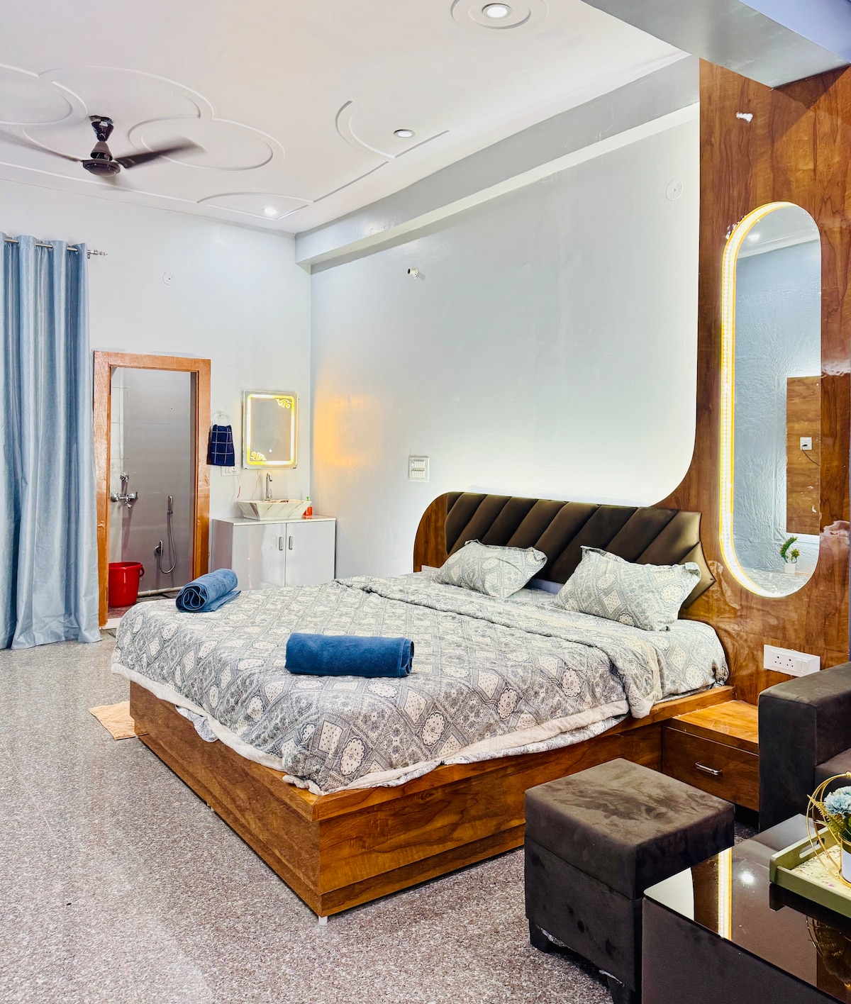 The first 2 Bhk Apartment that meets every requirements ✨ - 2 Bedrooms ( Master bedroom, second bedroom) - 2 King Sized Beds - A spacious living area with a comfortable seating arrangement - 2 bathrooms ( 1 in each of the bedrooms) - Kitchenette (with all cooking basics available and amenities stocked up, it is the perfect place to prepare your favourite meals) - A Shared Balcony area connecting with the apartment which can be the perfect space for your evening strolls Book Now!!