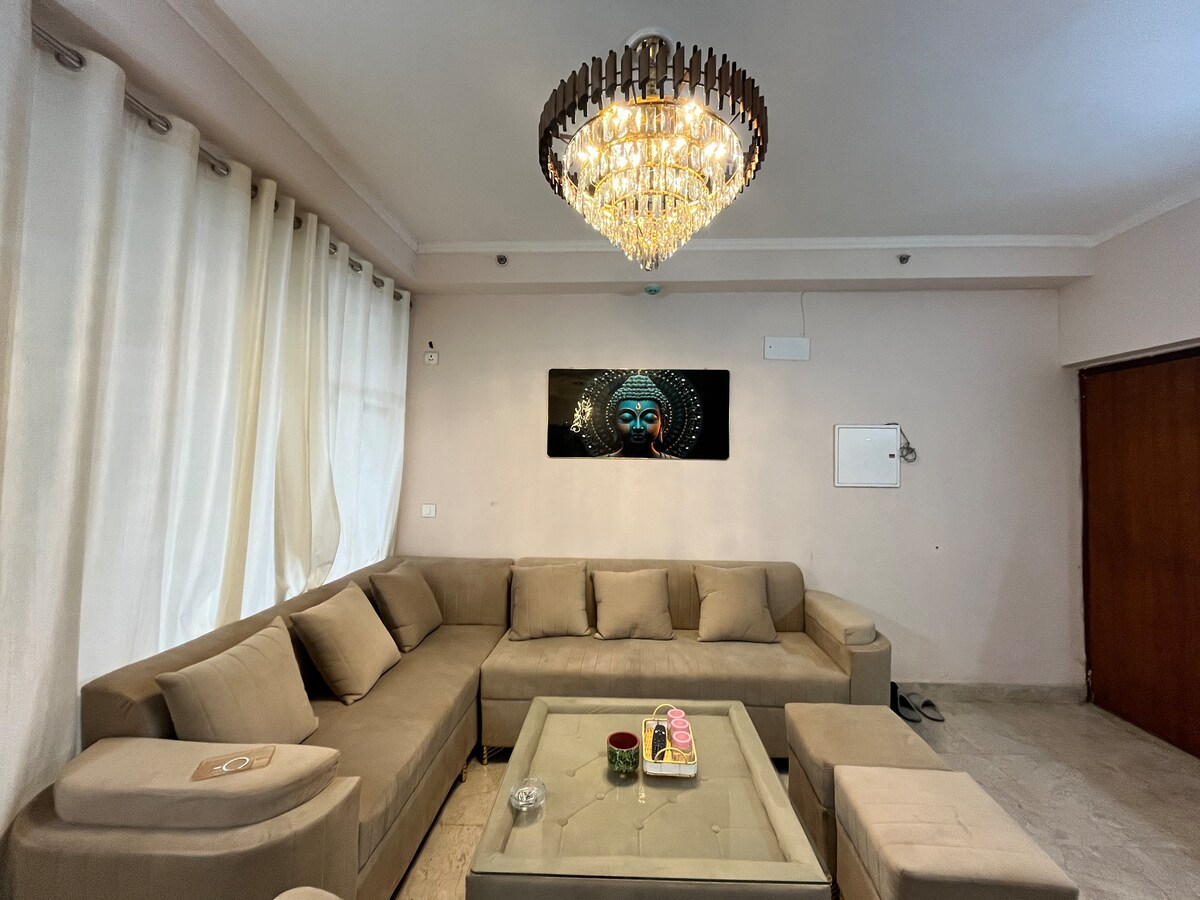 Naše na novo zgrajeno stanovanje 2 BHK združuje sodobno udobje z naravnim šarmom. Prostor vključuje 2 mirni spalnici z zakonskimi posteljami, prostorno dnevno sobo, dobro opremljeno kuhinjo, 2 kopalnici: ena je povezana z glavno spalnico, druga pa je dostopna iz dnevne sobe in druge spalnice ter balkona v obliki črke L s čudovitim razgledom na mesto. Namestitev se nahaja v bližini vrhunskega nakupovalnega središča v Noidi. Ta dobro nameščena lokacija vam ponuja priročnost trgovin, kavarn in zabave.