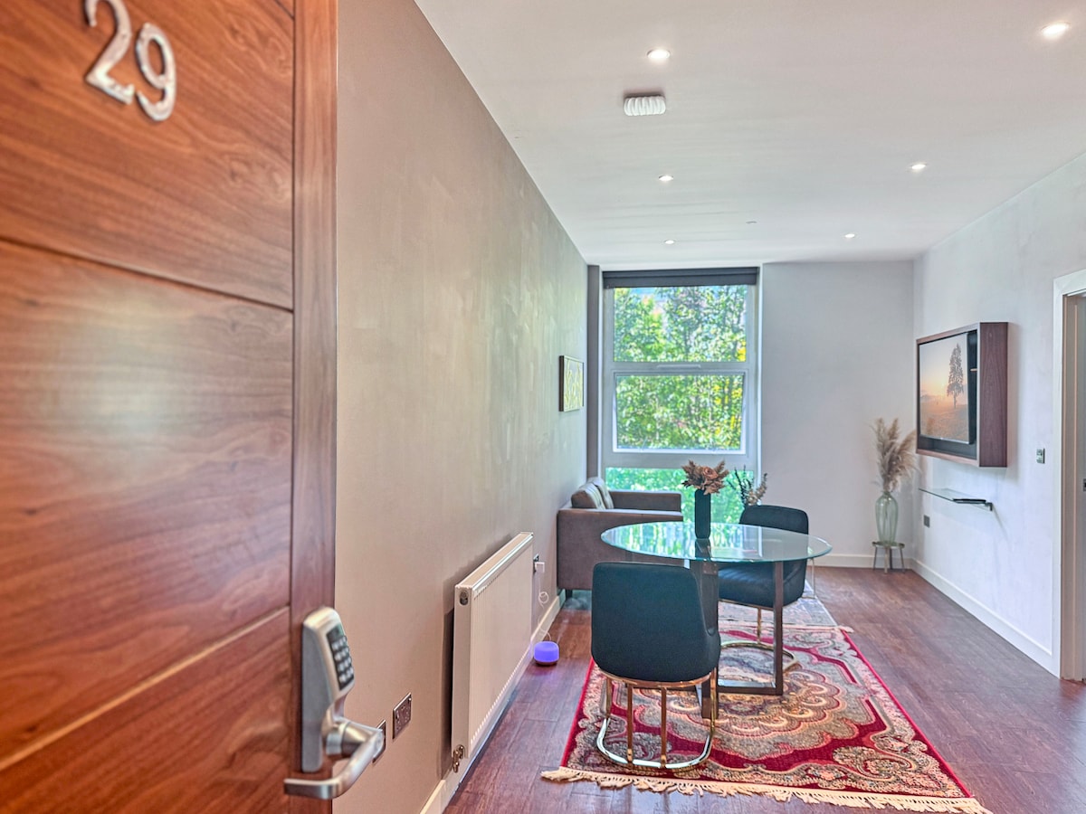 Nahaja se v središču Milton Keynesa na zgornji četrti ulici in je izvrstno »Diamond Suite«, dvosobno stanovanje z neprimerljivim razkošjem. Apartma se ponaša z medijsko steno, prostranim kuhinjskim otokom z visokokakovostnimi napravami Neff. Uživajte v uporabi naše mize za namizni nogomet in se umaknite v spalnice, ki jih krasijo diamanti od stene do stropa. Obe spalnici imata sobe s prho, zakonske postelje z zadrgo in povezavo pa nudijo udobje, ki ga je mogoče prilagoditi. To preveliko zatočišče se ponaša z več kot 300 kvadratnih metrov in je prava redkost.