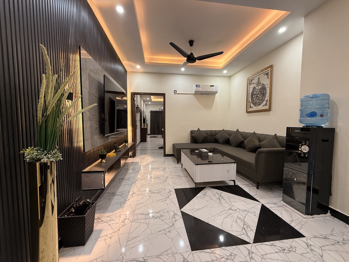 Dobrodošli v naših elegantnih dvosobnih apartmajih v DHA 5 Islamabad. Uživajte v priročnosti hitre vožnje na delo in se sprostite v prostoru z lepo dekoracijo in popolnoma opremljenim domačim kinom. Udobno prenočišče, ki je idealno za popotnike, ki iščejo udobje in zabavo, ponuja sodobno opremo na odlični lokaciji. Je popolnoma ločen del z ločenim vhodom in parkiriščem, primeren za družine, zato je zelo varen in miren. Zabave in glasna glasba niso dovoljeni. Neporočeni pari niso dovoljeni.