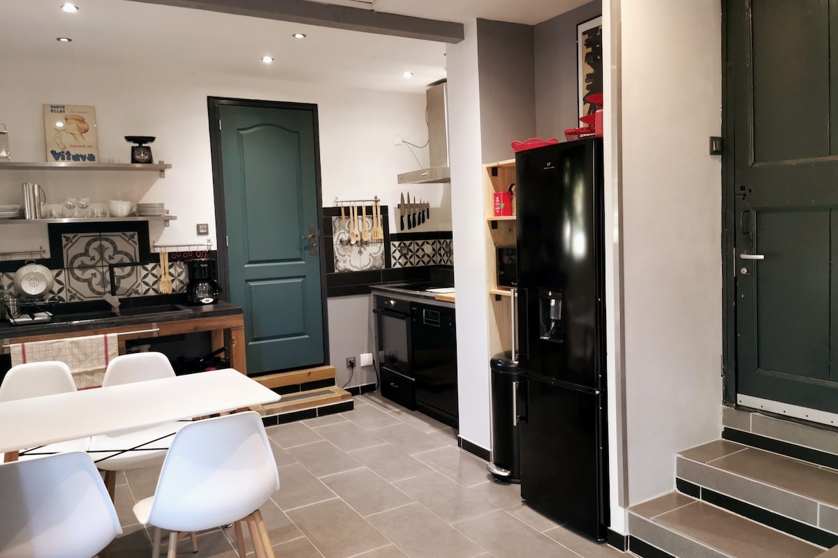 Welcome to our ground floor house of 45 m2 and its large bay windows open onto the large wooden terrace of 35 m2. Quiet, and without vis-à-vis, you can peacefully enjoy the view and access to our large bohemian garden with our swimming pool, in the heart of the village, two minutes from shops, restaurants and the market with local products. Private parking just in front (quiet dead end). Private terrace. Access to the owners' pool and garden.