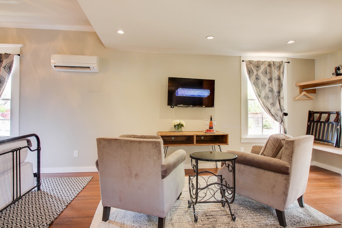 Mirno zatočišče v osrčju Fredericksburga. Soba Sage je ena od treh udobnih sob za goste v našem družinskem domu na ulici Mulberry Street, kjer že več kot desetletje sprejemamo popotnike. Popolno je za goste, ki cenijo udobje, povezovanje in pristno izkušnjo v regiji Hill Country, kjer lahko lokalni gostitelji delijo najboljše, kar mesto ponuja.