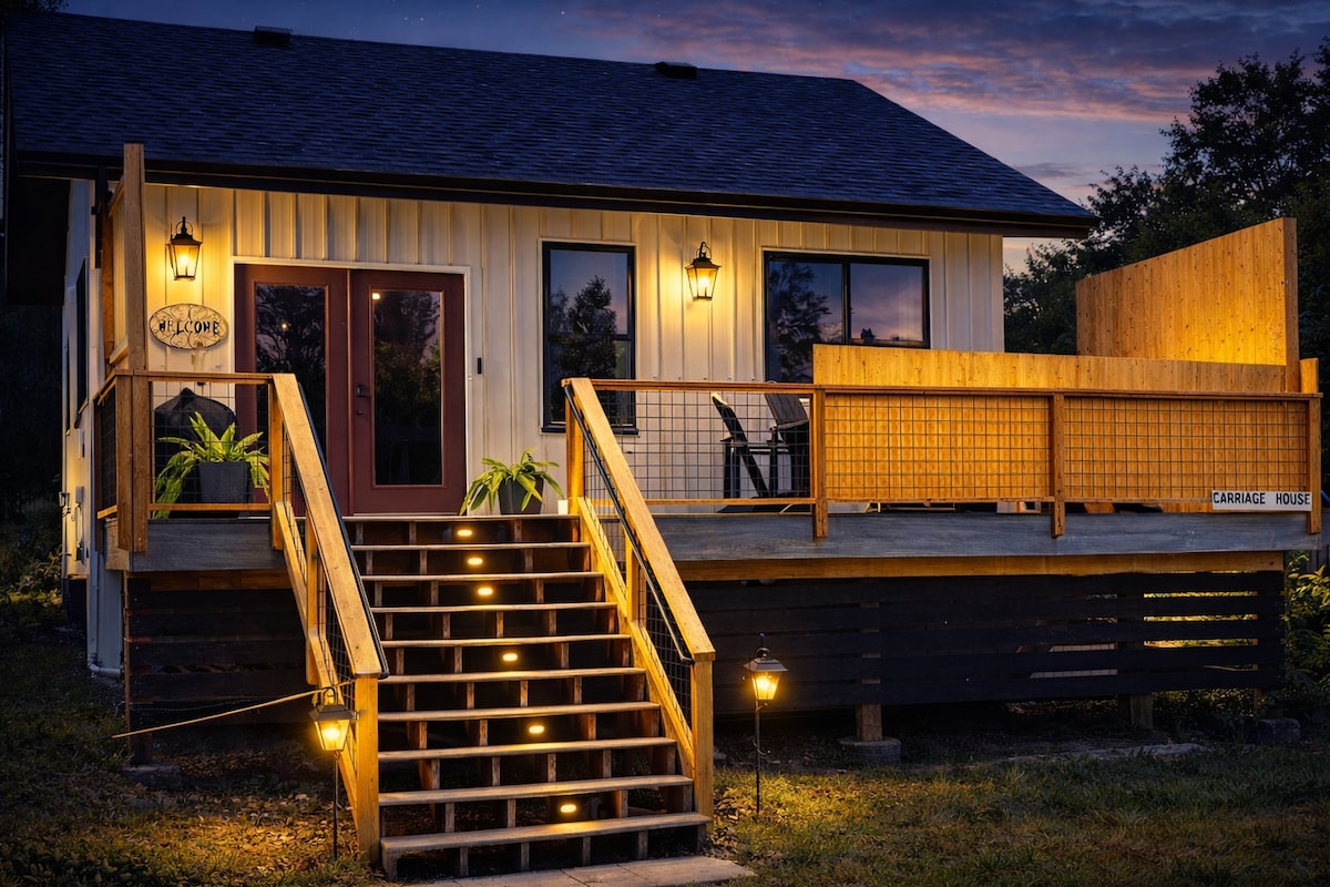 »Prostor je bil brezhiben in čudovito urejen.« Ko se boste peljali po makadamski poti do hiše Carriage House, boste šli mimo Aspensa, Blue Spruce in Lodgepole Pinesa, medtem ko boste uživali v svežem gorskem zraku. To je šele začetek tega, zaradi česar sta kočija in kmetija tako posebni. Sprednja terasa gleda na čudovite gore, čudovito jezero pa je tik nad hribom. Ponoči lahko uživate v osupljivem pogledu na zvezde in miru območja High Country.