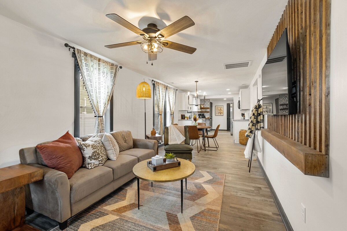 Prostorno in mirno enosobno stanovanje v bližini vsega v Richmondu! To stanovanje v prvem nadstropju z 10-metrskimi stropi in odprtim tlorisom je udobno in prostorno. Nahaja se v prvem nadstropju dvostanovanjskega objekta s senčnim dvoriščem in kompozitno teraso. Vse je na novo prenovljeno, vključno s polno kuhinjo, kopalnico s čudovito prho ter centralno klimatsko napravo in ogrevalnim sistemom. Radi sprejemamo tudi vaše kosmatince, dvorišče pa je kot nalašč za pse, ki lahko tekajo naokrog.