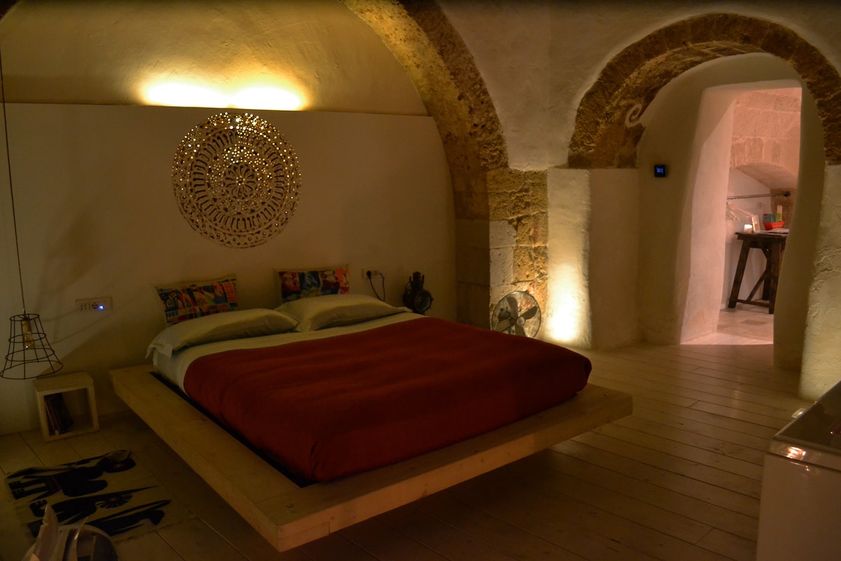 Suite Santa Maria - L'Opera dell'Architetto is a wonderful suite located in the heart of the Sassi of Matera, just a few steps from the striking 13th-century Romanesque-Pugliese-style Cathedral. Nestled in an ancient palazzotto in the Civita of this beautiful town, our home offers a patio with enchanting views of both the Gravina stream and the impressive canyon where the Park of the Rock Churches is located.