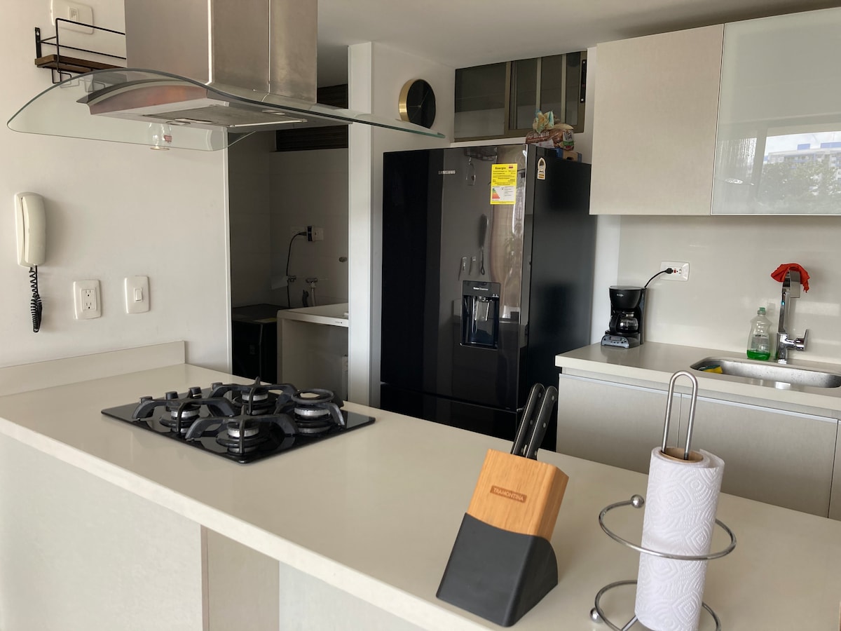 Moderno apartamento en altos de cabecera, cerca de universidades y centros comerciales, ideal para descansar, trabajar o turistear, cuenta con cama queen sabanas 300 hilos, aire acondicionado, cocina equipada , zona de trabajo, sala con tv. Acceso a terraza, lavandería, bahia parqueo no cubierto frente a la propiedad, maquina dispensadora de snack y bebidas. Cerradura digital. Bienvenidos!