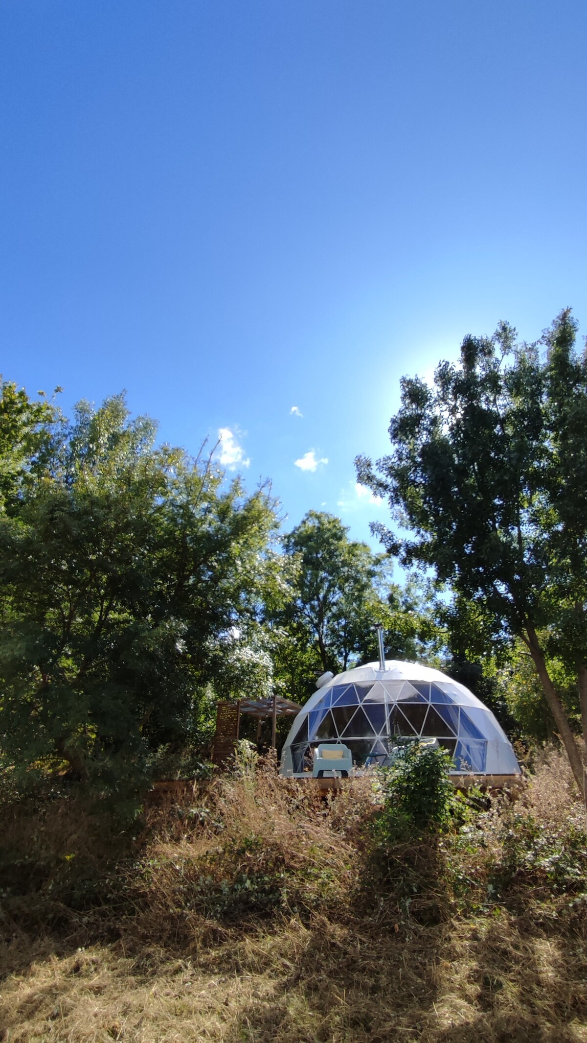 Glamping kupola s pogledom na francosko podeželje.