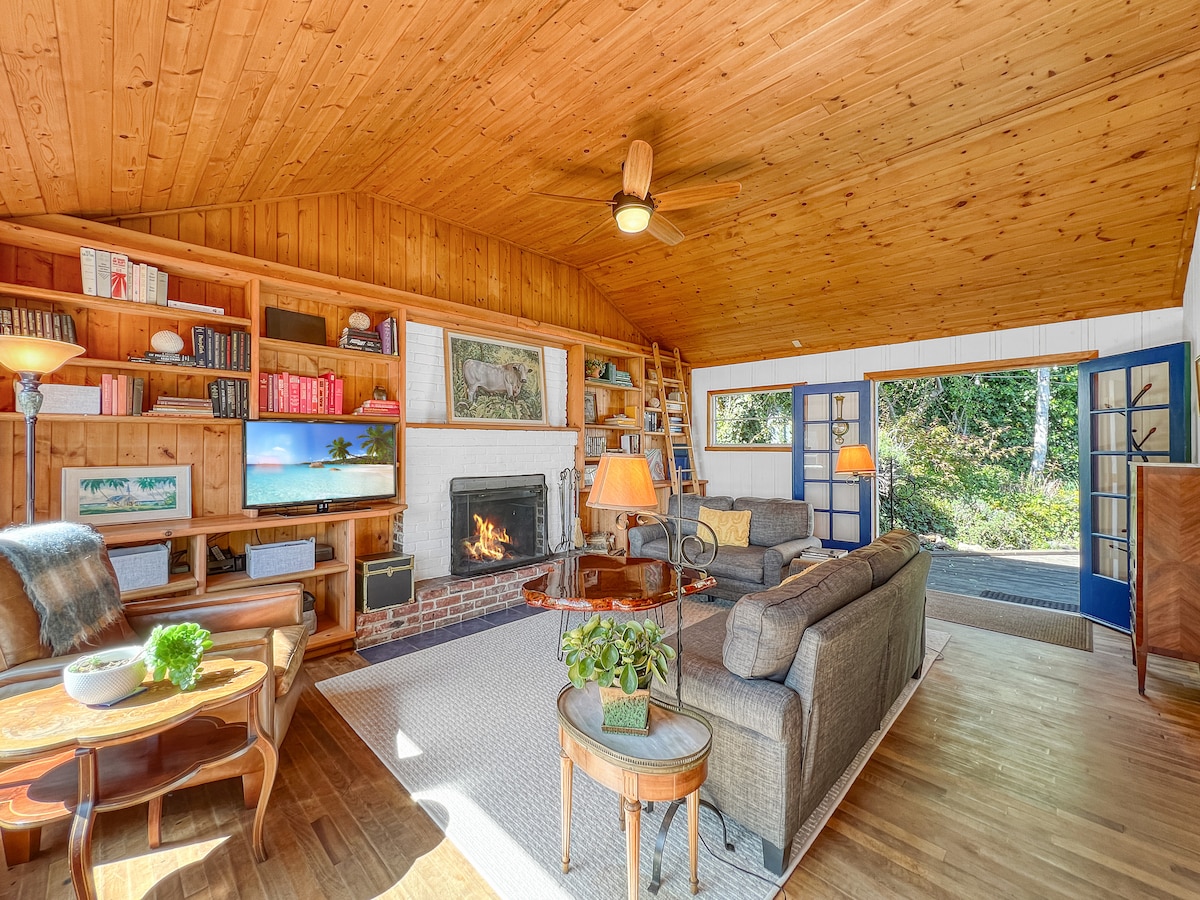 Main cabin sleeps 4 (add the Quail's nest to sleep 6). Pet allowed, fee applies. Location! This cabin is rare combo of a tranquil retreat with unsurpassed convenience, located in Jenner. Steps outside the courtyard is coffee & wine shop, often w/ live music, as well as a C-store for anything you may have forgotten. Easy river access/boat launch too. Turn the other direction from the courtyard and find the Jenner Headlands for a picturesque hike. The hot tub under the stars completes the day!