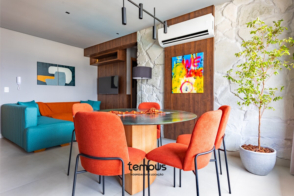 ❗️Edinstveno, elegantno in prefinjeno novo💯 stanovanje je poskrbelo, da se boste počutili kot doma. Oglejte si svoj najljubši film v spalnici ali dnevni sobi na najsodobnejšem klimatiziranem pametnem televizorju z glasovnim ukazom. Poslušajte svojo glasbo prek Alexe, počivajte v najboljši postelji, uživajte v najbolj okusni prhi, uživajte v razgledu z balkona in uživajte v sodobnem Setorju Buenu v najboljši regiji Goiânia ! Condomínio Tai Residências Creation ®️RenovatoResidences