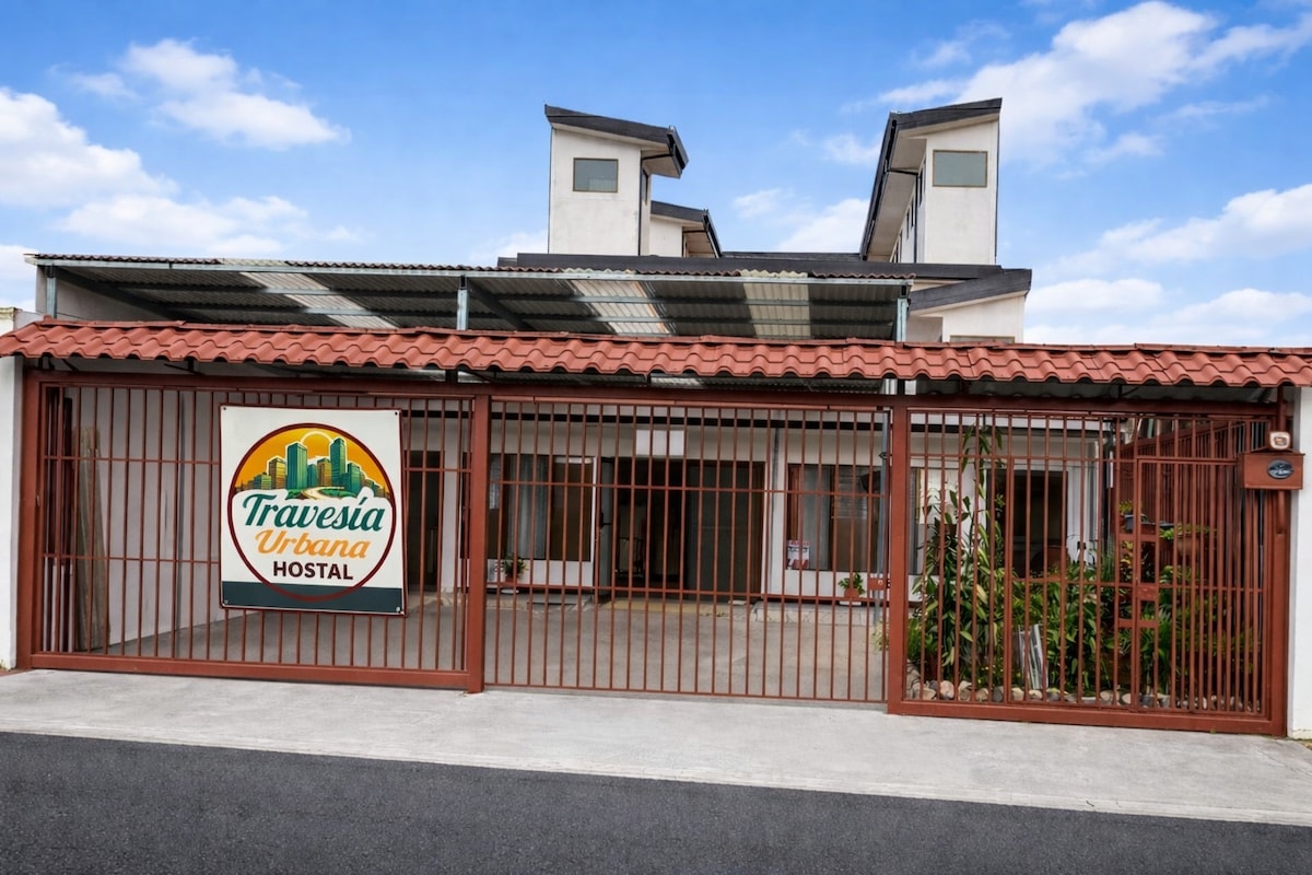 To je zasebna soba v najini hiši. Naša hiša se nahaja v Tibásu, ekskluzivnem in varnem območju San Joséja, ki se nahaja 10 minut vožnje z avtobusom ali Uberjem od središča San Joséja. Je blizu različnih supermarketov. Od nakupovalnega središča Plaza Lincoln je oddaljeno 15 minut. V okolici so številne restavracije. Imamo skupne prostore, ki so čisti in v dobrem stanju: - Skupna kuhinja - Dnevna soba s televizorjem, ki ima dostop do Netflixa. Kopalnica z vročo vodo.