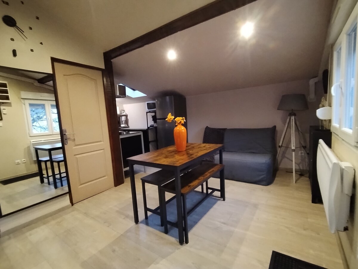 Velika prenovljena garsonjera s površino 38 m², ki je v celoti prenovljena in opremljena. Nahaja se zelo blizu železniške postaje in centra mesta. V čudoviti stari stavbi (1900), v 2. nadstropju, je sestavljena iz odprte kuhinje v dnevni sobi/spalnici (prava postelja + bočni klik), kopalnica in plakat. WI-FI /TNT TV/ klimatska naprava /polna kuhinja in potrebna za kuhanje / Nespresso aparat za kavo/ posteljnina. Brezplačno parkiranje na ulici Vhod v Vigik in domofon