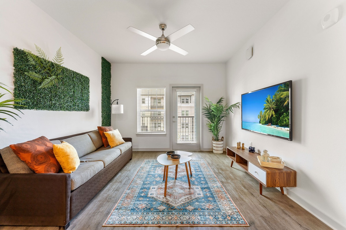 Welcome to our stylish oasis in Kissimmee, which seamlessly blends sophistication with a laid-back vibe. Your stay begins in a professionally cleaned apartment for your full enjoyment. Discover resort-style amenities – a sparkling pool, a fitness center, and hammocks, offering the luxuries of a five-star retreat. Conveniently located with in walking distance of theme parks, restaurants, and shopping. Book now. We can't wait to host you in our little slice of paradise!